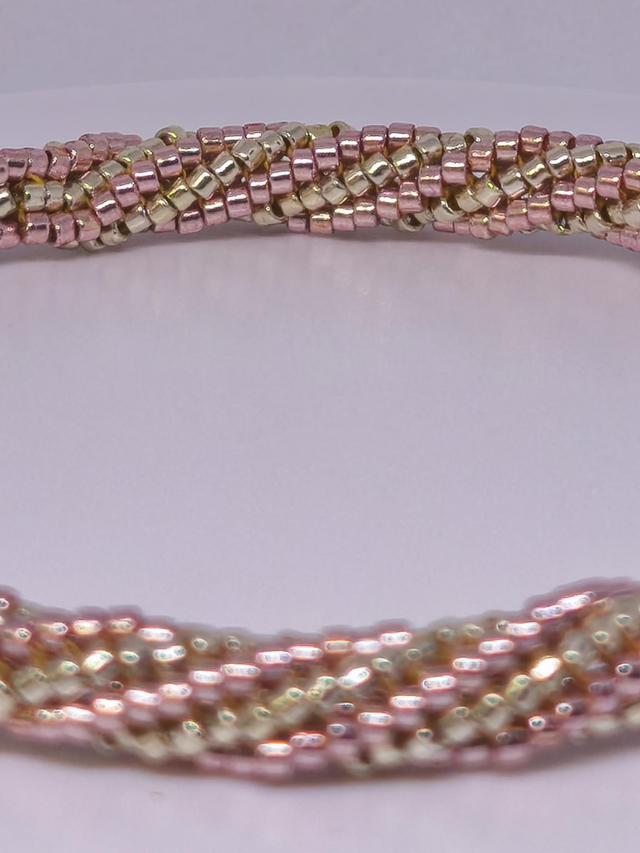 composé de perles miyuki delica métalliques or clair, rose pastel et fil miyuki qui donne une certaine souplesse à ce joli bangle.