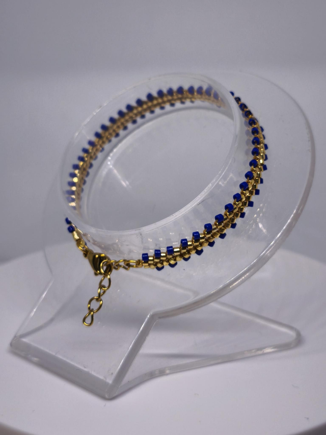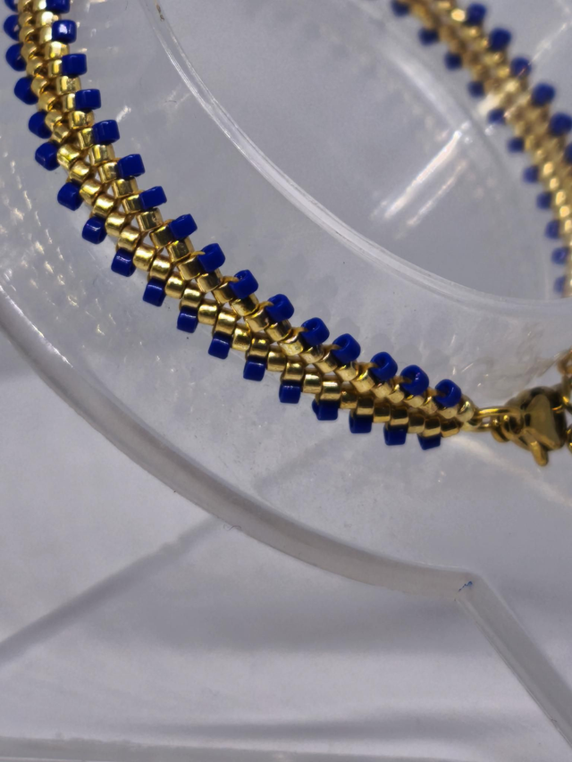 Tissé à la main à partir de perles miyuki delica dorées et bleues