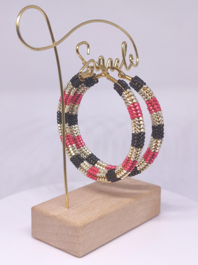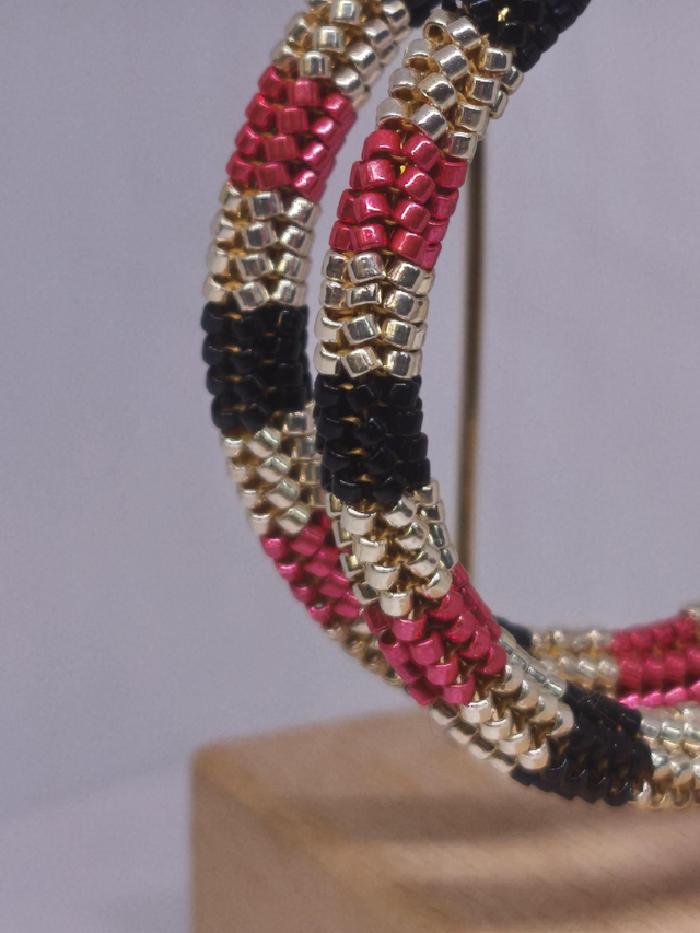 Tissées à la main à partir de perles miyuki delica noires, roses métalliques et or clair